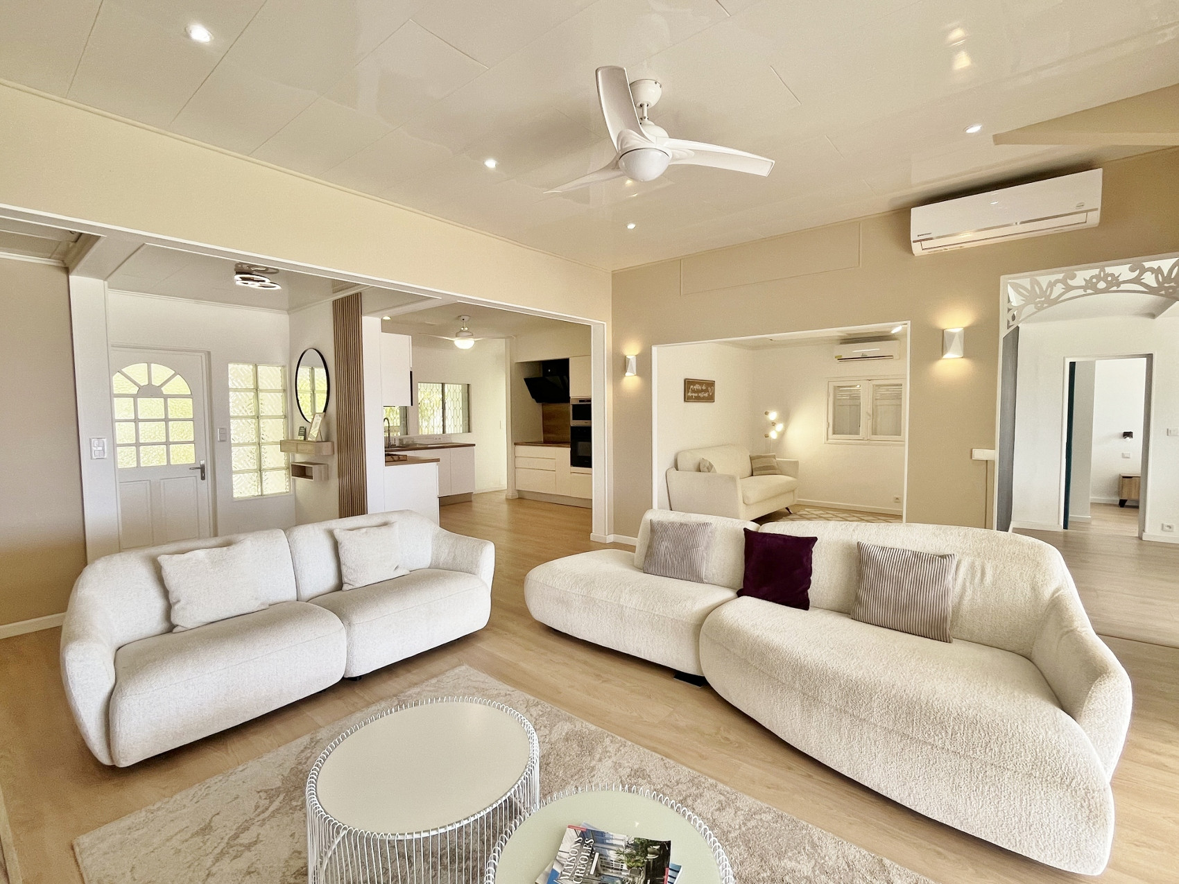 ▪️ Living room with TV and air conditioning, opening onto the terrace