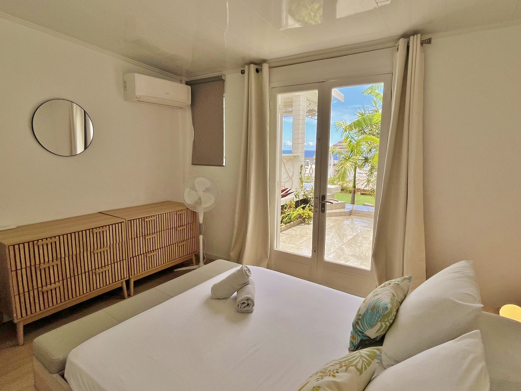 ✔️ Bedroom 1: double bed, air conditioning, balcony with ocean view and direct pool access + ensuite bathroom (shower + single basin)