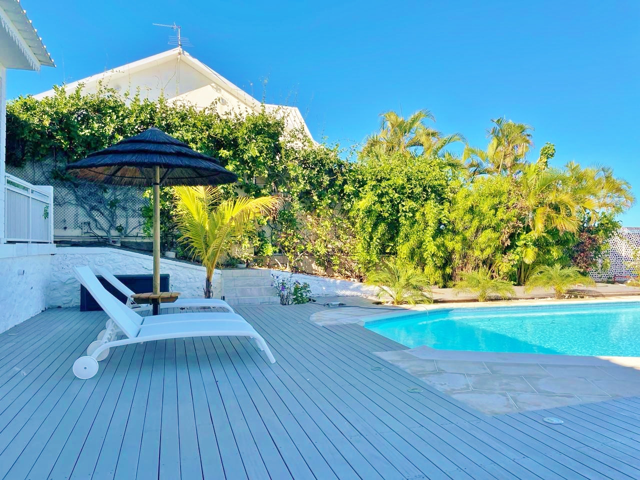 Set down your bags at Villa Vénus, a stunning holiday home nestled in Saint-Gilles-les-Bains. With a panoramic view of the Indian Ocean, a private pool, and beautiful outdoor living spaces, it’s the perfect getaway for families or friends on Réunion Island’s sunny west coast. Enjoy its peaceful atmosphere, modern comfort, and the lagoon just 2 km away.